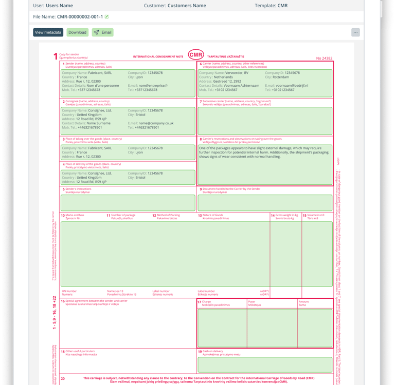 Safely store electronic consignment notes (eCMR) in the cloud, keeping track of all previously created documents and providing instant access.